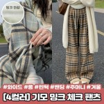 체크 하이뷰 팬츠 기모 하이웨스트 밴딩 울 [4컬러] 2351 모직 롱 라온 핀턱 밍크 일자 스트링 와이드