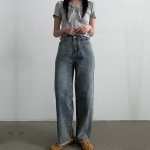 여성 여성 팬츠 팬츠 롱 그레이진 하의 코디 데일리룩 여자 찢청바지